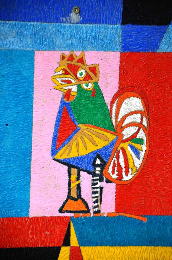Es werden Früchte dargeboten ,Töpfe,Pfannen,Hühner,Körbe.
